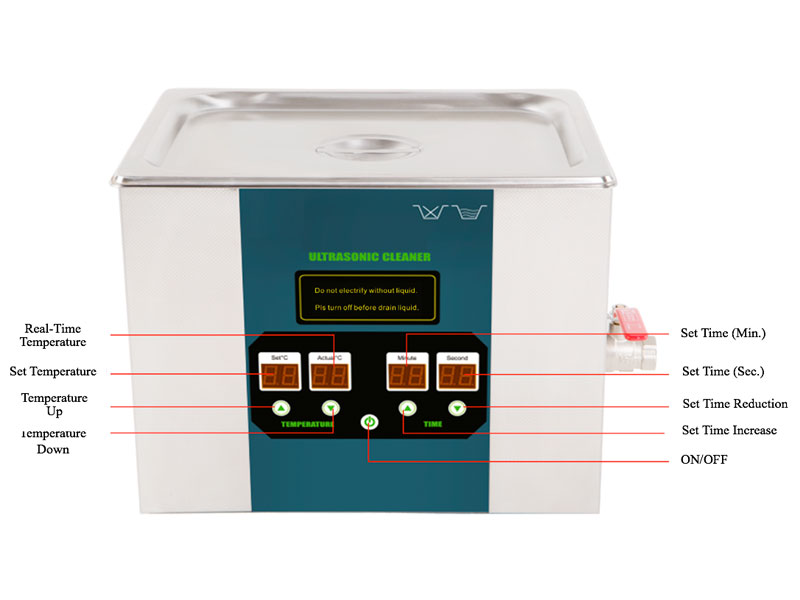 1. Limpe o líquido de limpeza no tanque e conecte a fonte de alimentação (que deve ser aterrada de forma confiável). Após a inicialização, a temperatura real atual é exibida e a temperatura padrão é de 0 ℃. O tempo de operação da onda de ultra-som é de 3 minutos por padrão.